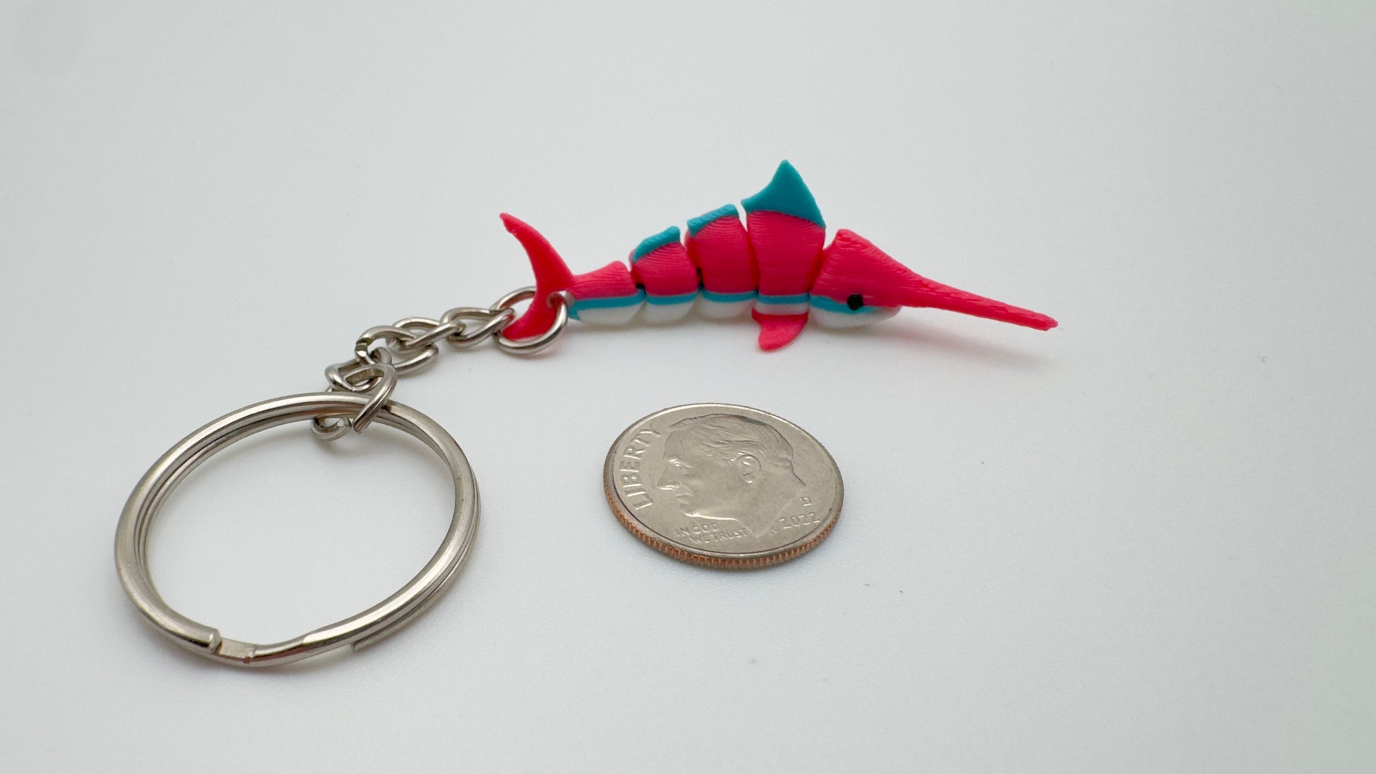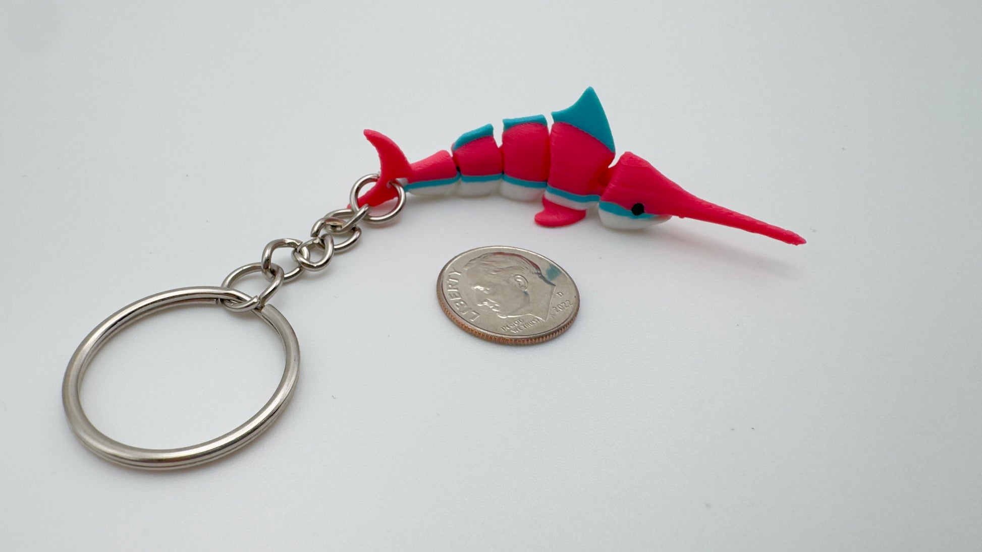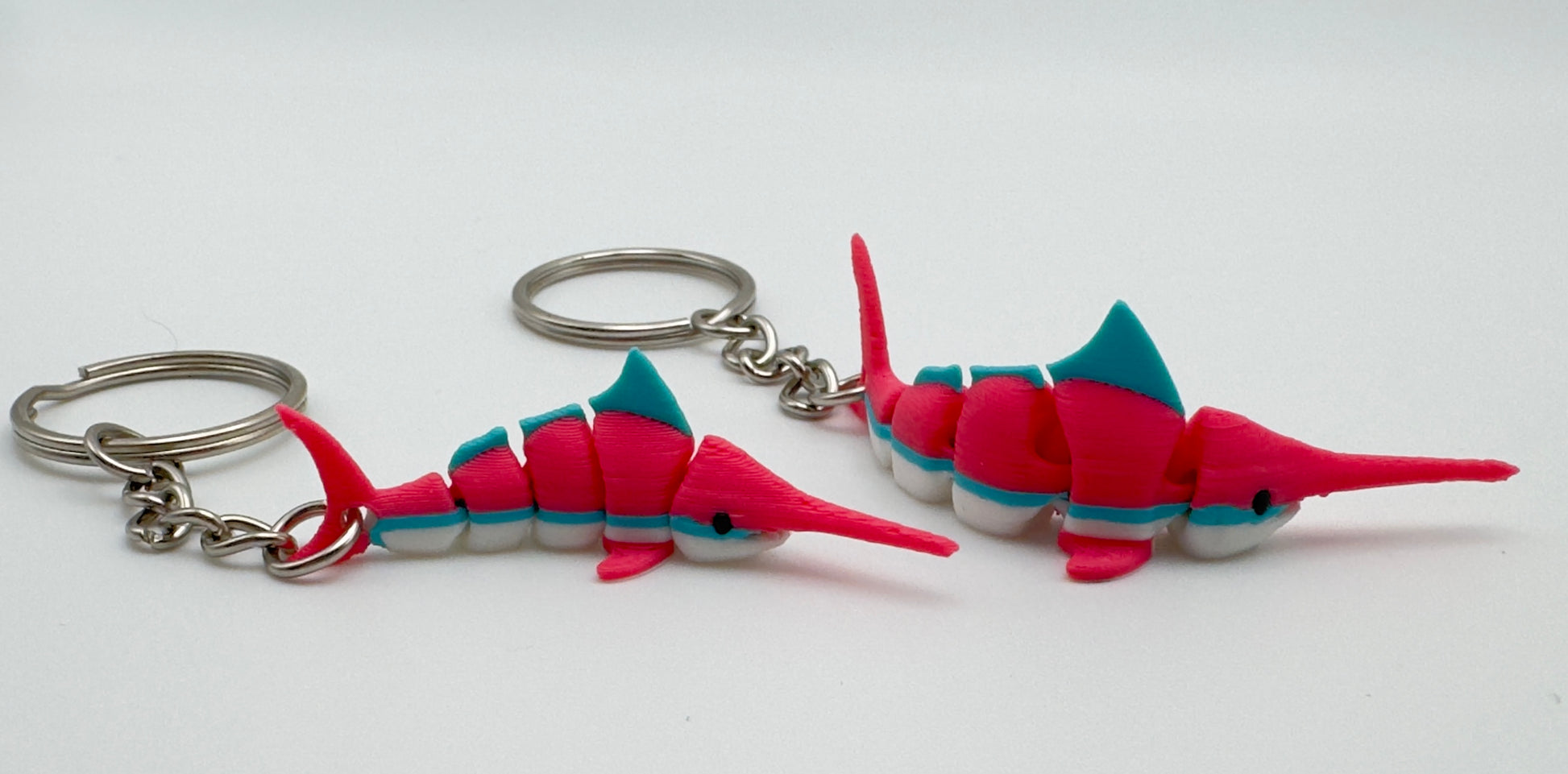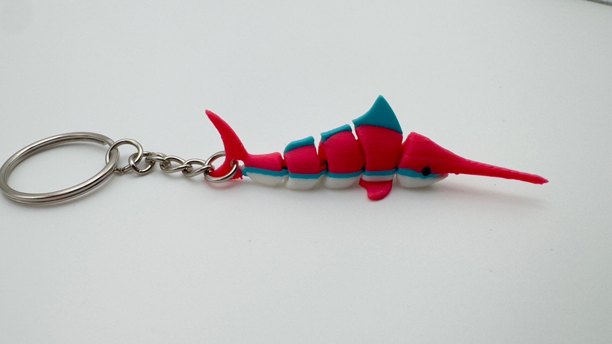Add a splash of tropical color to your gear with the Strawberry Daiquiri Swordfish. This isn't just a keychain; it’s a high-definition, 3D-printed companion designed for those who love the ocean and a pop of neon style. With its articulating segments, this swordfish "swims" in your hand, making it the ultimate tactile fidget toy or eye-catching accessory.